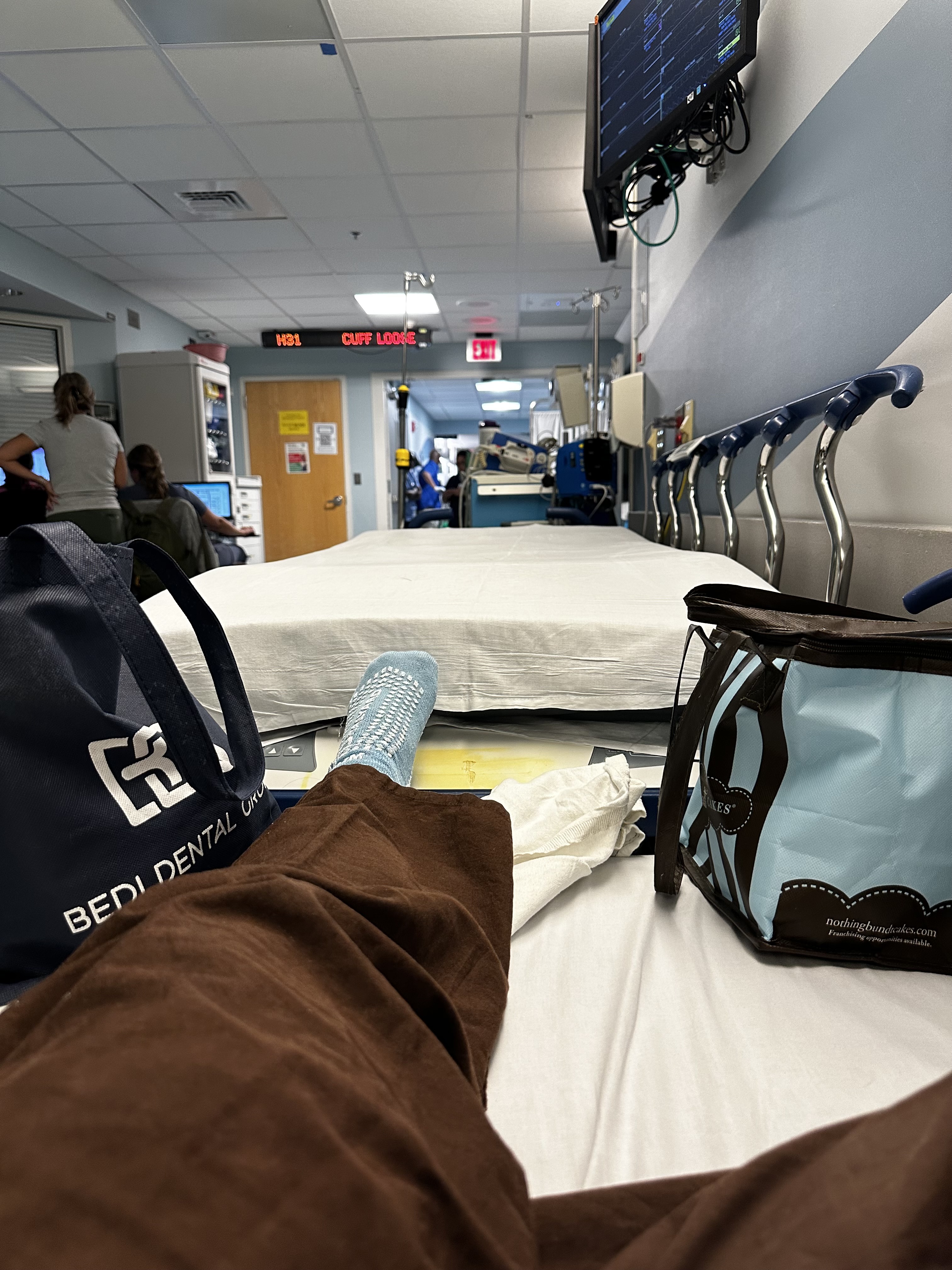 I was admitted with double ear infection, pink eye, and the flu which after their results came in, I was actually negative for the Flu and going through something I never thought I’d hear a doctor say, “DKA.” For diabetics DKA or Diabetes Ketoacidosis is something you never want to experience. It’s a 0 out 10, would recommend. DKA is develops when your body doesn’t have enough insulin to allow blood sugar into your cells for use as energy. My number when admitted was over 600, which to me, made no sense when Saturday morning before it all went downhill my number was in the 200s. Seems high but that’s a normal number for fighting colds, infections, or being sick in general. The diabetes educated when I asked what I could have done differently said it was just a serious of unfortunate events. Our immune systems are basically non-existent and fighting anything that has to do with our bodies spikes our numbers, now imagine three infections on top of each other. I spent the next five days in the ER hall way being treated through IV’s, lots of blood work, and fluids, while waiting for a room.